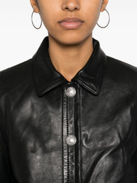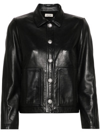 Litchi leather jacket Highlights - Black - Lambskin - Smooth grain - Spread collar - Long sleeves - Two front patch pockets - Short side slits - Straight hem - Internal slip pocket - Full lining - Embossed silver-tone buttons - Front press-stud fastening Imported Composition Lining: Polyester 100%, Cotton 100% Outer: Lamb Skin 100% SIZE & FIT Model measurements Height 5 ft 9 in(1.76 m) Bust/Chest 31.1 in(79 cm) Hips 36.61 in(93 cm) Waist 24.8 in(63 cm) FittingInformation Designed for a slim fit that sits just away from the body offering a close yet comfortable fit Soft leather has a supple and smooth construction offering some flexibility This piece fits true to size – take your usual size