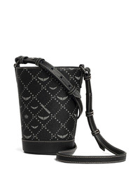 logo-print bucket bag Highlights - Black - Press-stud fastening - Adjustable shoulder strap - Silver-tone logo plaque - Main compartment Imported Composition Outer: Polyurethane 67%, Recycled Polyester 33% SIZE & FIT Measurement DEPTH 3.34 in(8.5 cm) HEIGHT 4.13 in(10.5 cm) WIDTH 3.34 in(8.5 cm)