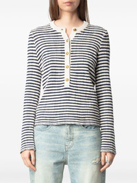 Mandala jumper Highlights - White - Front button placket - Crew neck - Long sleeves - Horizontal stripe pattern Imported Composition Organic Cotton 56%, Viscose 23%, Linen/Flax 13%, Polyester 5%, Metallic Fibre 3%