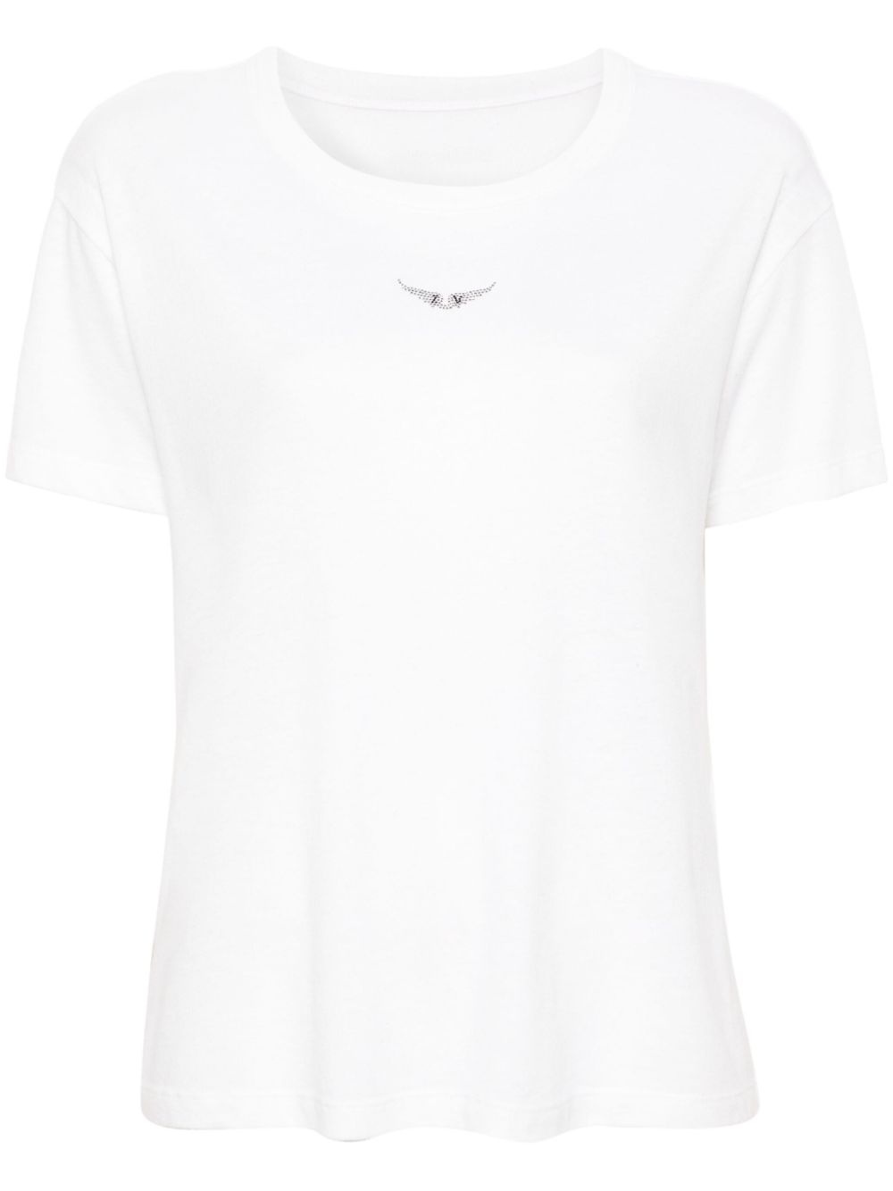 Marta wings-applique T-shirt Highlights - Cream white - Recycled polyester blend - Jersey texture - Semi-sheer construction - Crystal-embellished wings applique to the front - Crew neck - Short sleeves - Straight hem - Unlined Imported Composition Recycled Polyester 50%, Organic Cotton 30%, Linen/Flax 20% SIZE & FIT Model measurements Height 5 ft 9 in(1.76 m) Bust/Chest 31.1 in(79 cm) Hips 36.61 in(93 cm) Waist 24.8 in(63 cm) FittingInformation Designed for a relaxed fit, this piece allows for comfort and movement when worn Made from a lightweight non-stretch fabric, this piece offers minimal elasticity when worn This piece fits true to size – take your usual size