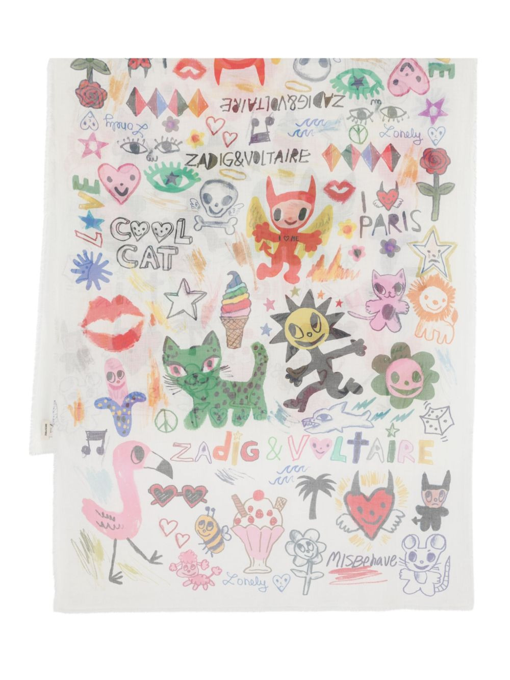 Maxi Delta Humberto frayed scarf Highlights - White/multicolour - Cotton - Fine knit - Semi-sheer construction - Cartoon print - Logo print to the front - Frayed edge - Rectangle shape Made in Italy Composition Cotton 100% SIZE & FIT Measurement LENGTH 74.8 in(190 cm) WIDTH 33.46 in(85 cm) Washing instructions Hand Wash