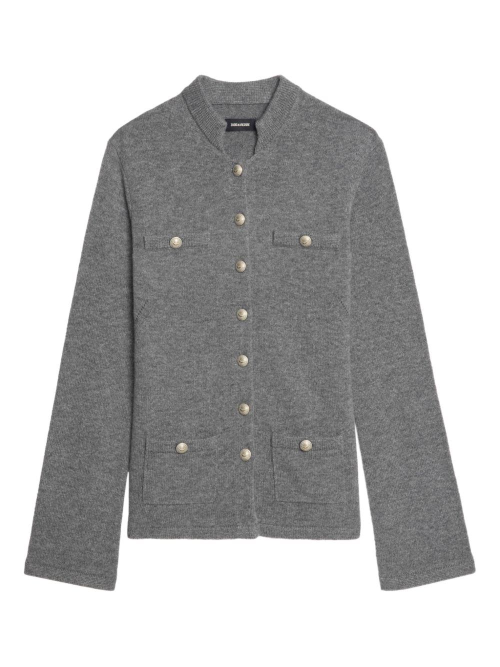 melange-effect cardigan Highlights - Grey - Ribbed knit - Bell sleeves - Front button fastening - Chest welt pockets Imported Composition Wool 90%, Cashmere 10% Washing instructions Read Manufacturer Guidelines