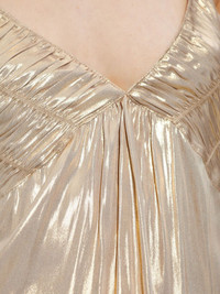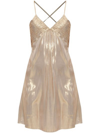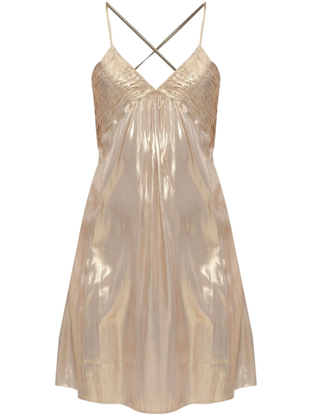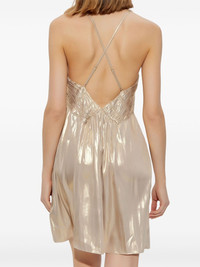 metallic-effect mini dress Highlights - Gold-tone - Adjustable spaghetti straps - Rear criss-cross straps - Open back - V-neck Imported Composition Polyester 100%