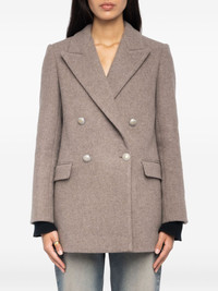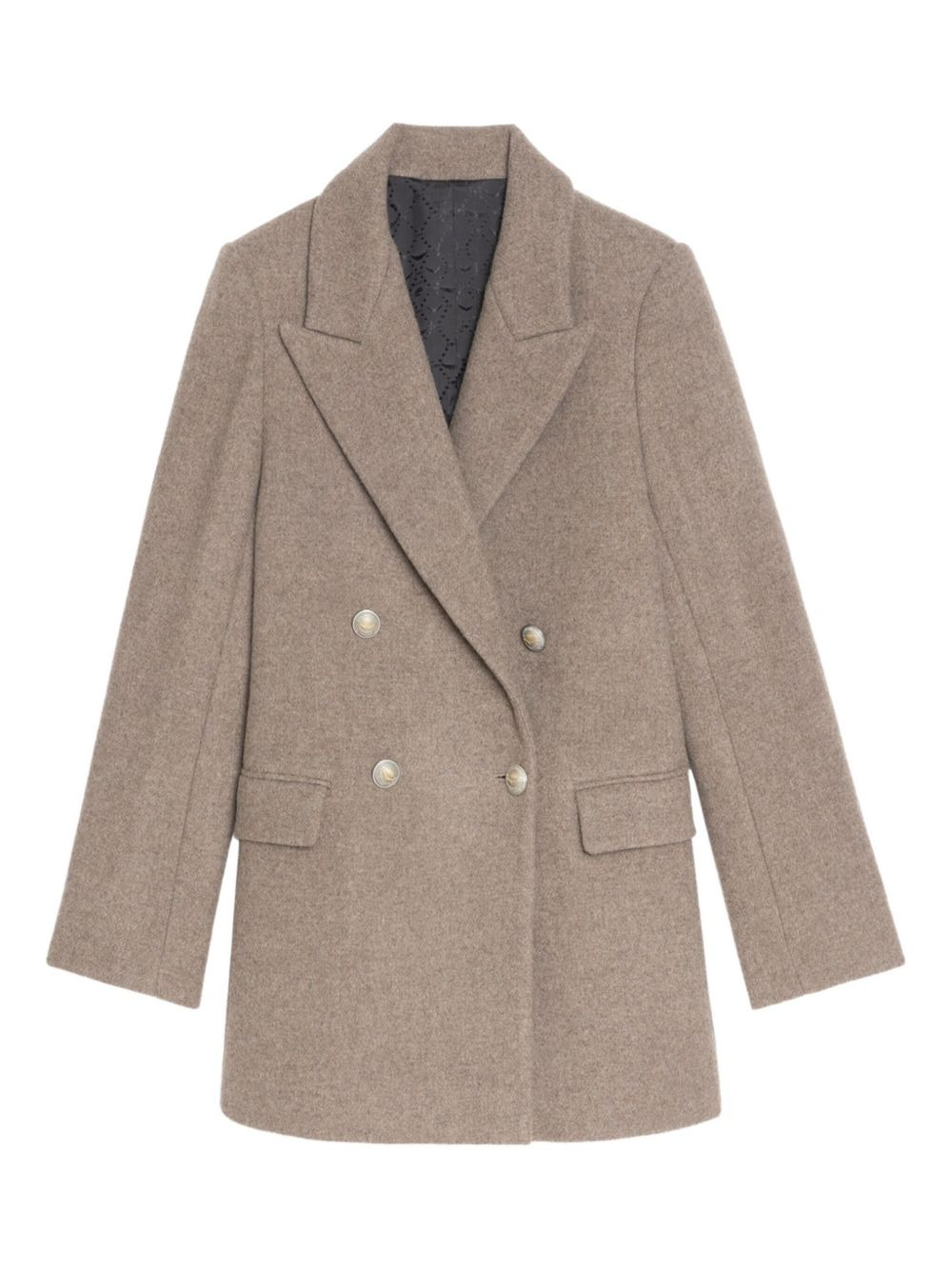 Miew double-breasted buttoned coat Highlights - Taupe - Double-breasted closure - Four buttons - Peak lapel - Welt flap-pockets - Straight hem Imported Composition Recycled Wool 74%, Recycled Polyamide 23%, Polyester 2%, Other fibres 1% Washing instructions Dry Clean Only