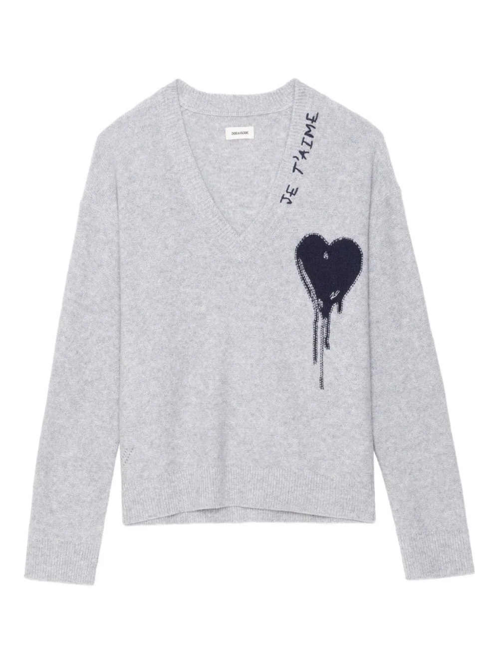 Mikyz heart V-neck sweater Highlights - Light grey - Heart motif - V-neck - Long sleeves - Ribbed hem and cuffs Imported Composition Cashmere 100% Washing instructions Hand Wash