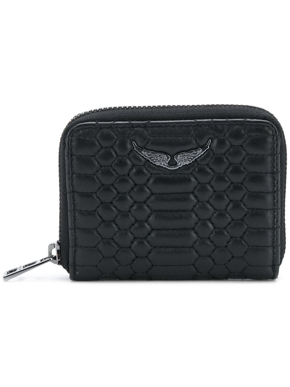 mini ZV matelasse wallet Black calf leather mini ZV matelasse wallet from Zadig & Voltaire featuring an all around zip fastening, a silver-tone logo plaque, an embossed internal logo stamp and multiple interior card slots. Imported Composition Outer: Calf Leather 100%