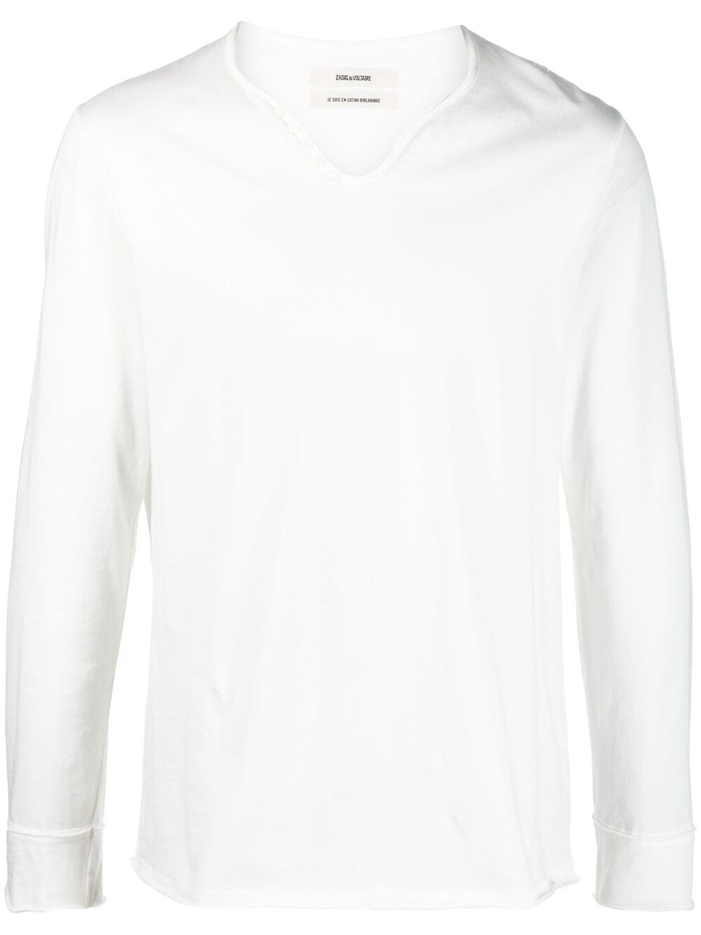 Monastir long-sleeved T-shirt Zadig&Voltaire's T-shirt offers a contemporary take on the casualwear staple. This white long-sleeve iteration is made of organic cotton with a V-neckline that's adorned with decorative buttons. Highlights - Challk-white - Cotton - Round neck - Short front button fastening - Long sleeves - Curved hem Imported Composition Cotton 100% SIZE & FIT Model measurements Height 6 ft 2 in(1.89 m) Bust/Chest 35.43 in(90 cm) Hips 36.61 in(93 cm) Waist 28.74 in(73 cm) Washing instructions Machine Wash