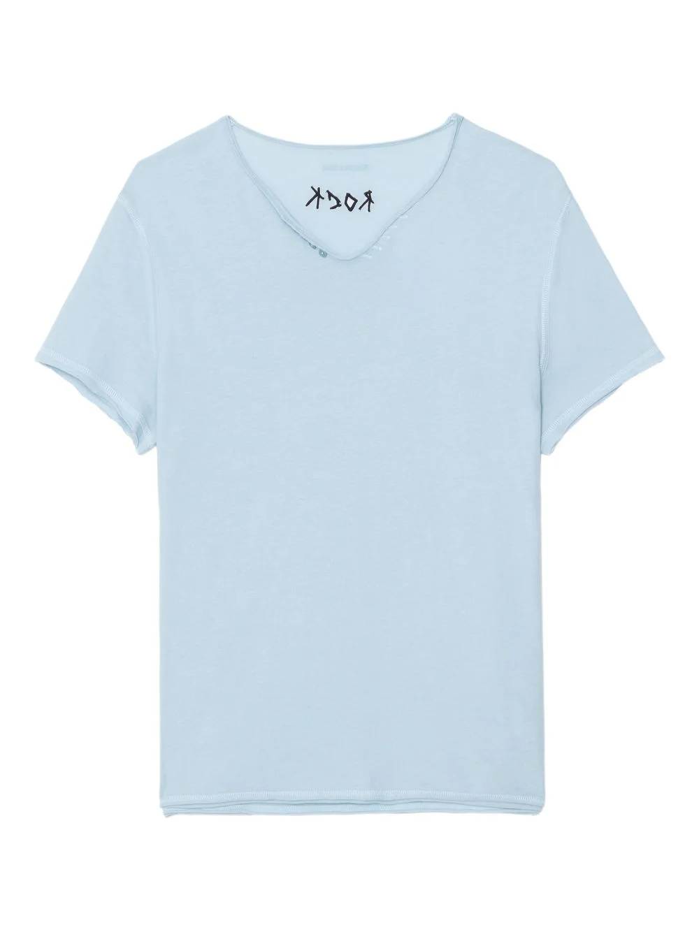 Monsatir Henley T-Shirt Highlights - Light blue - U-neck - Short sleeves - Raw hem - Rock detail at the back Imported Composition Organic Cotton 100% Washing instructions Machine Wash