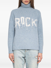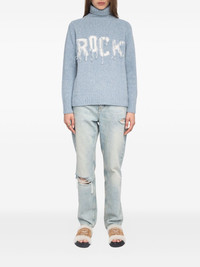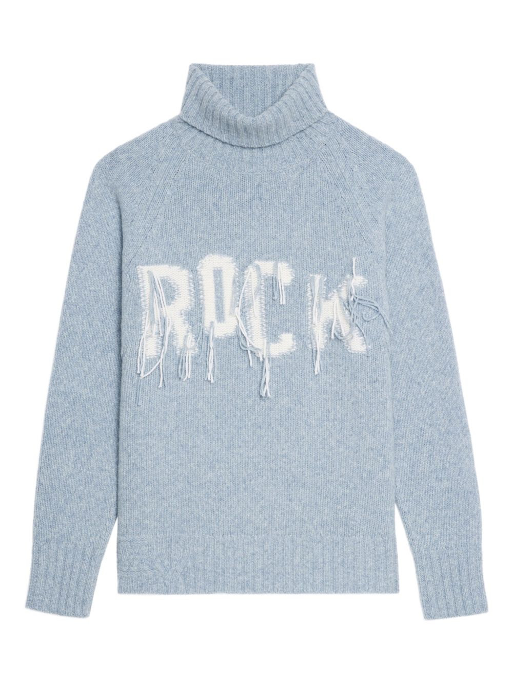 Mora roll-neck frayed-detail sweater Highlights - Light blue - Roll neck - Long sleeves - Ribbed cuffs - Frayed-detail lettering Imported Composition RWS Merino Wool 100% Washing instructions Read Manufacturer Guidelines