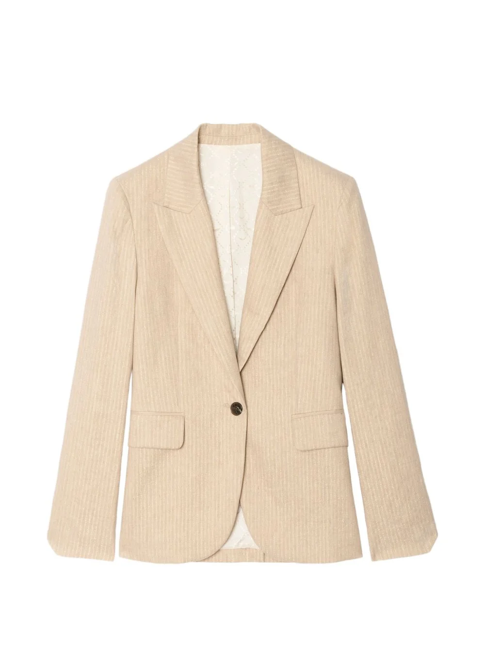 Navy tailored blazer Highlights - Beige - Pinstripes - Flap pockets - Single button fastening - Peak lapels Imported Composition Linen/Flax 54%, Organic Cotton 44%, Polyamide 1%, Polyester 1% Washing instructions Specialist Cleaning