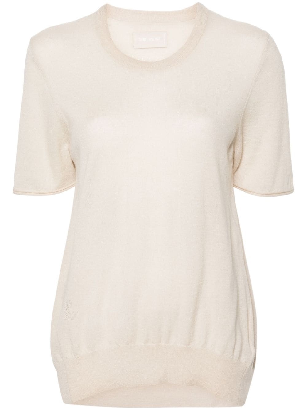 perforated-wings cashmere jumper Zadig&Voltaire illustrates its affinity for statement detailing with this beige jumper. Spun from sumptuous cashmere, it’s elevated with the brand's signature wings on the back. Highlights - Light beige - Cashmere - Knitted construction - Fine knit - Perforated wings detail to the rear - Crew neck - Short sleeves with rolled trim - Ribbed hem Imported Composition Cashmere 100% SIZE & FIT Model measurements Height 5 ft 9 in(1.76 m) Bust/Chest 31.1 in(79 cm) Hips 36.61 in(93 cm) Waist 24.8 in(63 cm) FittingInformation Designed for a relaxed fit, this piece allows for comfort and movement when worn Made with a midweight knit, this piece offers some stretch This piece fits true to size – take your usual size