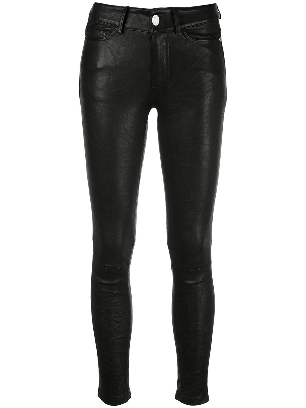 Phlame skinny trousers Black lambskin Phlame skinny trousers from Zadig & Voltaire featuring a five pocket design, a button and zip fly, a waistband with belt loops, a skinny fit and a low rise. Imported Composition Lamb Skin 100% SIZE & FIT Model measurements Height 5 ft 10 in(1.77 m) Bust/Chest 29.92 in(76 cm) Hips 35.03 in(89 cm) Waist 24.01 in(61 cm) Washing instructions Specialist Cleaning