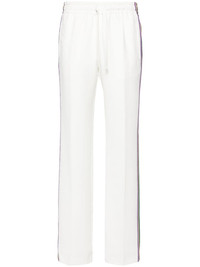 Pomy stripe-detail crepe trousers Highlights - White - Crepe texture - Side stripe detailing - Lurex detailing - Pressed crease - Mid-rise - Elasticated drawstring waistband - Two side welt pockets - Straight leg - Straight hem - Full lining Imported Composition Acetate 75%, Polyester 25% SIZE & FIT Model measurements Height 5 ft 10 in(1.77 m) Bust/Chest 32.28 in(82 cm) Hips 35.03 in(89 cm) Waist 25.19 in(64 cm) FittingInformation Designed for a straight-leg fit, these trousers allow for a close fit at the waist and an unrestricted, comfortable fit over the leg Adjust this piece’s waistband to your preference using the drawstring Made from a midweight fabric This piece fits true to size – take your usual size Washing instructions Dry Clean Only