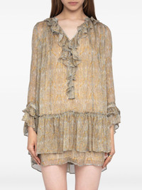 Ralice paisley ruffled mini dress Highlights - Cloud beige - Paisley print - Ruffled neckline - Ruffled cuffs - Long sleeves Imported Composition Viscose 100% Washing instructions Read Manufacturer Guidelines