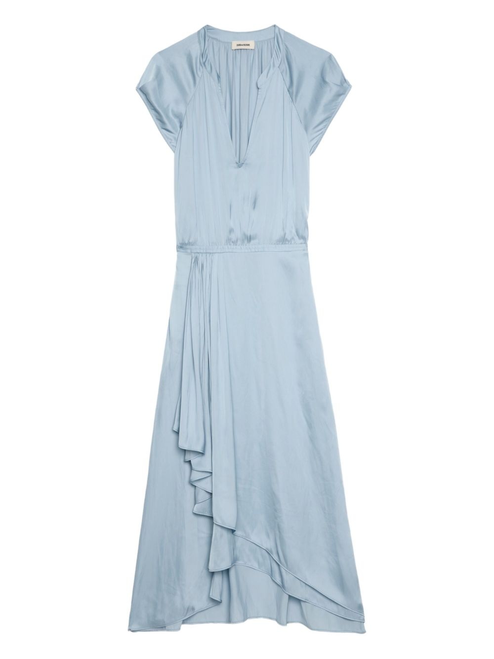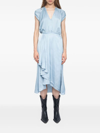 Randall midi dress Highlights - Light blue - Satin - V-neck - Short sleeves - Asymmetrical hem - Layered ruffles Imported Composition Recycled Polyester 57%, Polyester 43% Washing instructions Hand Wash