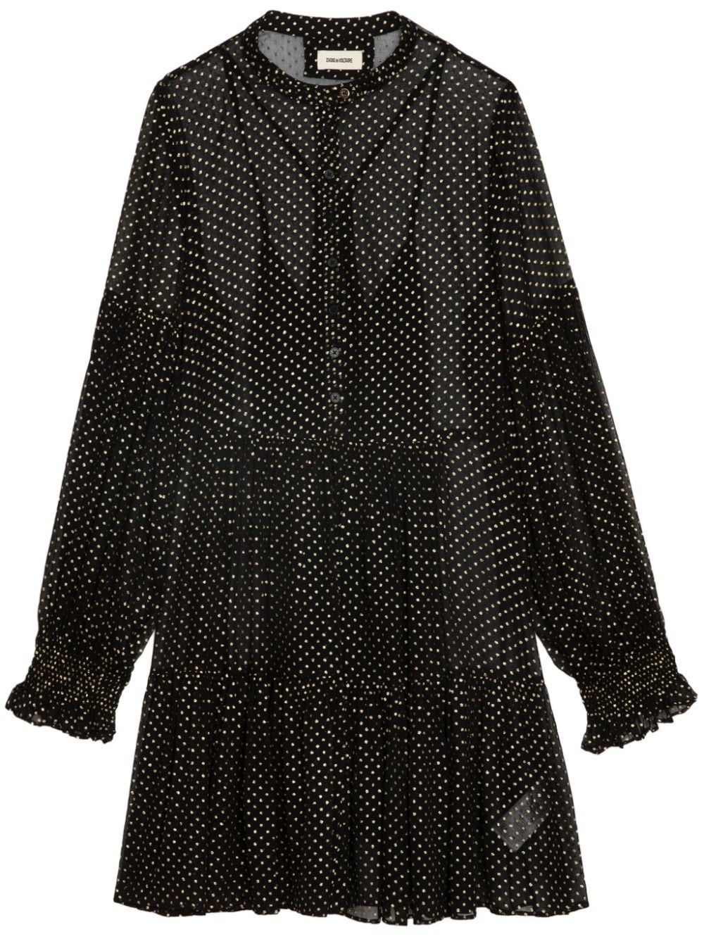 Randy dress Highlights - Black - Sheer - Sequin design - Front button fastening - Round neck - Long sleeves - Ruffle hem - Detachable slip dress Imported Composition Viscose 100%