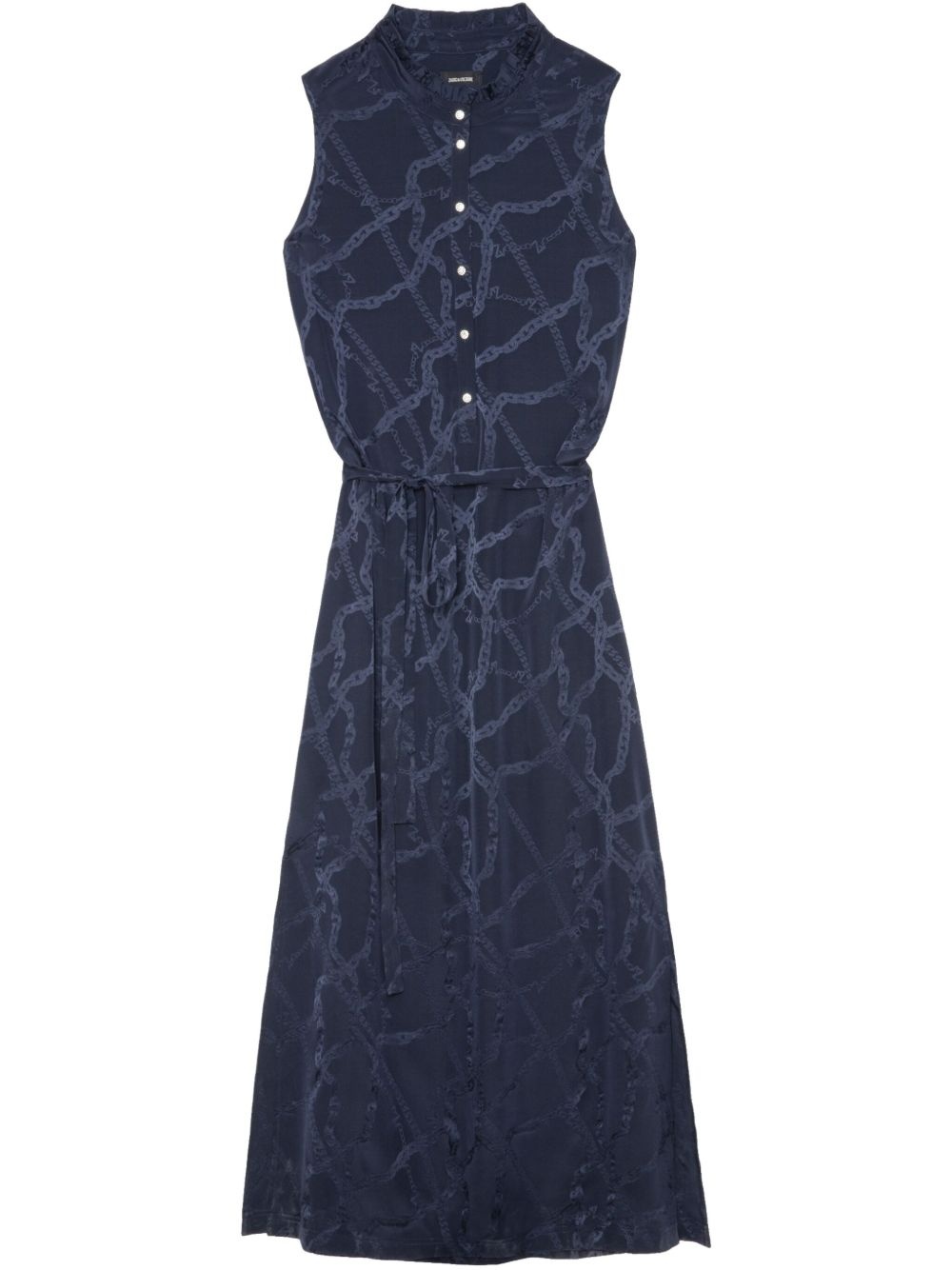 Raosi dress Highlights - Midnight blue - Front button fastening - Drawstring waist - Sleeveless - Ruffle collar Imported Composition Silk 100% Washing instructions Hand Wash
