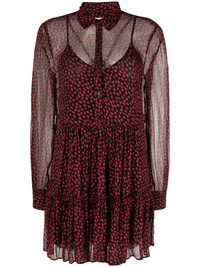 Razyele Crush-pattern crepe minidress Zadig&Voltaire's hallmark Razyele Crush dress encapsulates the label’s rock 'n' roll spirit – its gothic heart print and semi-sheer construction create a juxtaposition of romantic and grunge-inspired codes. Highlights - Jet black/brick red - Crepe texture - All-over crush pattern - Semi-sheer construction - Ruched detailing - Ruffled trim - Classic collar - Half front zip fastening - Long sleeves - Buttoned cuffs - Flared skirt - Above-knee length - Detachable slip dress Imported Composition Outer: Viscose 100% Lining: Viscose 100% SIZE & FIT Model measurements Height 5 ft 10 in(1.79 m) Bust/Chest 32.67 in(83 cm) Hips 34.25 in(87 cm) Waist 24.4 in(62 cm) FittingInformation Designed to be unstructured, offering a loose fit throughout The detachable slip sits just away from the body, offering a close yet comfortable fit Made from a lightweight non-stretch fabric This piece fits true to size – take your usual size Washing instructions Dry Clean Only