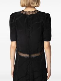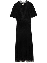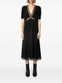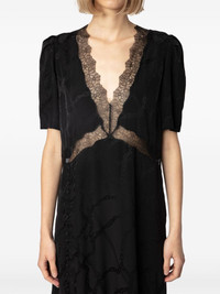 Redox dress Highlights - Black - Silk - Patterned jacquard - Rear zip fastening - V-neck - Lace trim - Gathered shoulders - Short sleeves - Mid-length Imported Composition Silk 100% Washing instructions Hand Wash