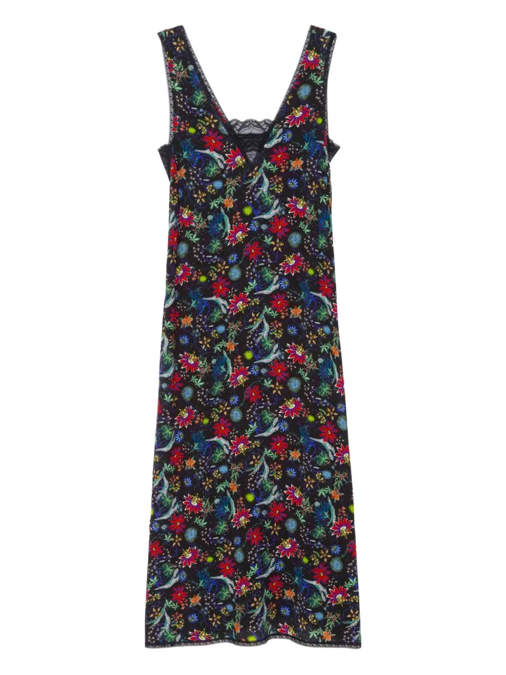 Renzo lace floral midi dress Highlights - Black - Floral print - Lace trim - V-neck - Sleeveless - Side slit Imported Composition Organic Viscose 100% Washing instructions Hand Wash