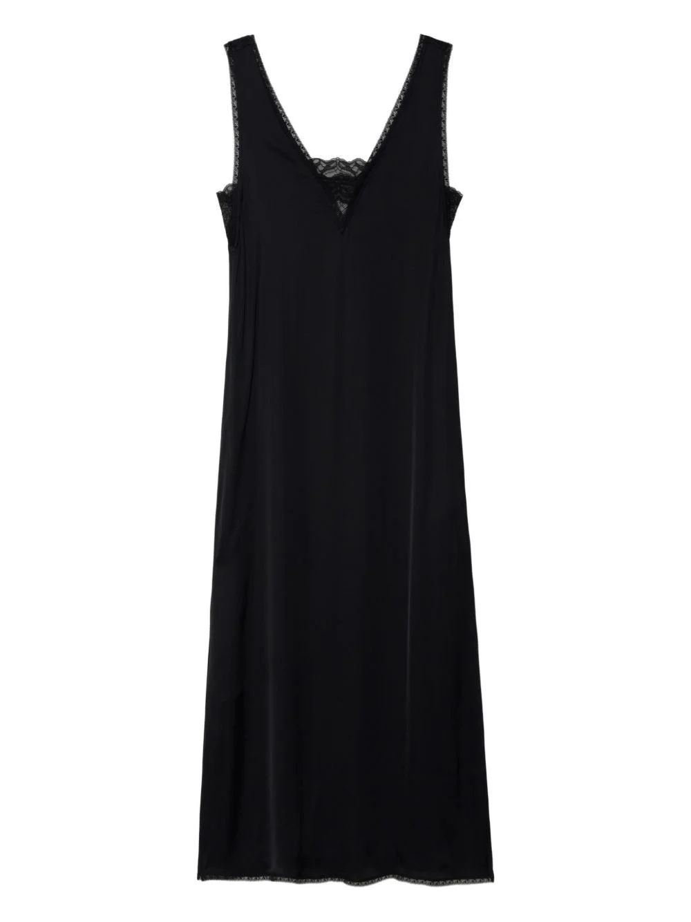 Renzo satin-fabric dress Highlights - Black - Lace trim - V-neck - Spaghetti straps - A-line Imported Composition Viscose 100% Washing instructions Machine Wash
