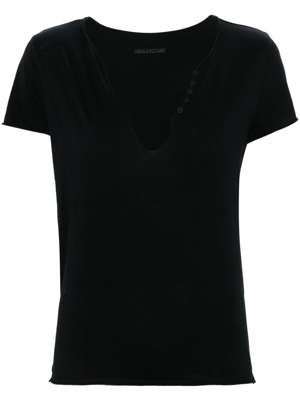 Henley T-shirt Highlights - Black - Organic cotton - Jersey texture - V-neck - Short sleeves - Rear rhinestone embellished logo - Raw-cut hem - Short front button fastening Imported Composition Organic Cotton 100% SIZE & FIT Model measurements Height 5 ft 10 in(1.77 m) Bust/Chest 33.07 in(84 cm) Hips 37 in(94 cm) Waist 24.8 in(63 cm) FittingInformation Designed for a relaxed fit, this piece allows for comfort and movement when worn Made from a midweight non-stretch fabric, this piece offers minimal elasticity when worn This piece fits true to size – take your usual size