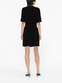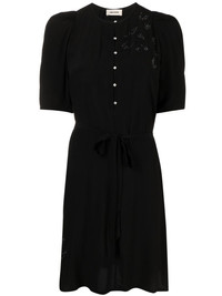 rhinestone-embellished mini dress Rendered in a versatile black, this lightweight day dress by Zadig & Voltaire is adorned with delicate rhinestone detailing. Its minimalistic silhouette is enhanced with a figure-defining tie belt at the waist. Highlights - Black - Round neck - Short sleeves - Rhinestone embellishment - Front button fastening - Tied waist - Straight hem - Above-knee length Imported Composition Viscose 100% SIZE & FIT Model measurements Height 5 ft 10 in(1.78 m) Bust/Chest 29.92 in(76 cm) Hips 34.64 in(88 cm) Waist 23.62 in(60 cm) FittingInformation Designed to be unstructured, offering a loose fit throughout The adjustable tie waist gives a more adaptable and personalised fit Made from a midweight non-stretch fabric This piece fits true to size – take your usual size