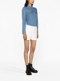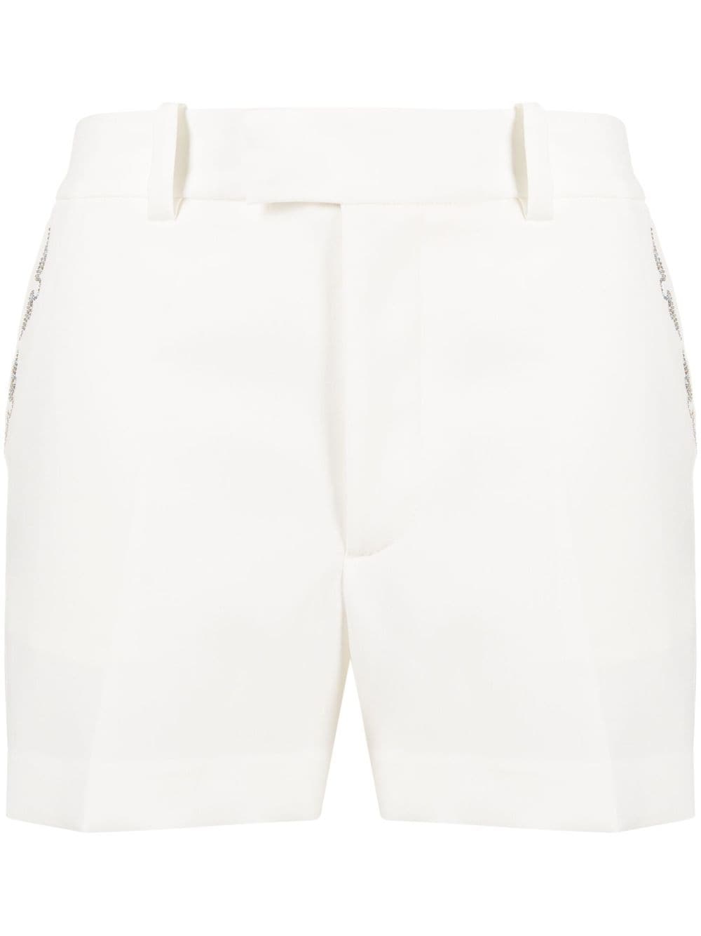rhinestone-embellished shorts These shorts speak to Zadig&Voltaire’s propensity for refined silhouettes with a twist. They’re tailored to a sleek silhouette and adorned with a rhinestone-encrusted iteration of the brand’s wings motif at each side. Highlights - White - Rhinestone embellishment - Wings motif - Mid-rise - Belt loops - Concealed front fastening - Rear flap pocket - Thigh-length Imported Composition Outer: Polyester 69%, Viscose 26%, Spandex/Elastane 8% Lining: Viscose 100% SIZE & FIT Model measurements Height 5 ft 10 in(1.78 m) Bust/Chest 31.49 in(80 cm) Hips 35.03 in(89 cm) Waist 23.62 in(60 cm) Washing instructions Dry Clean Only