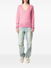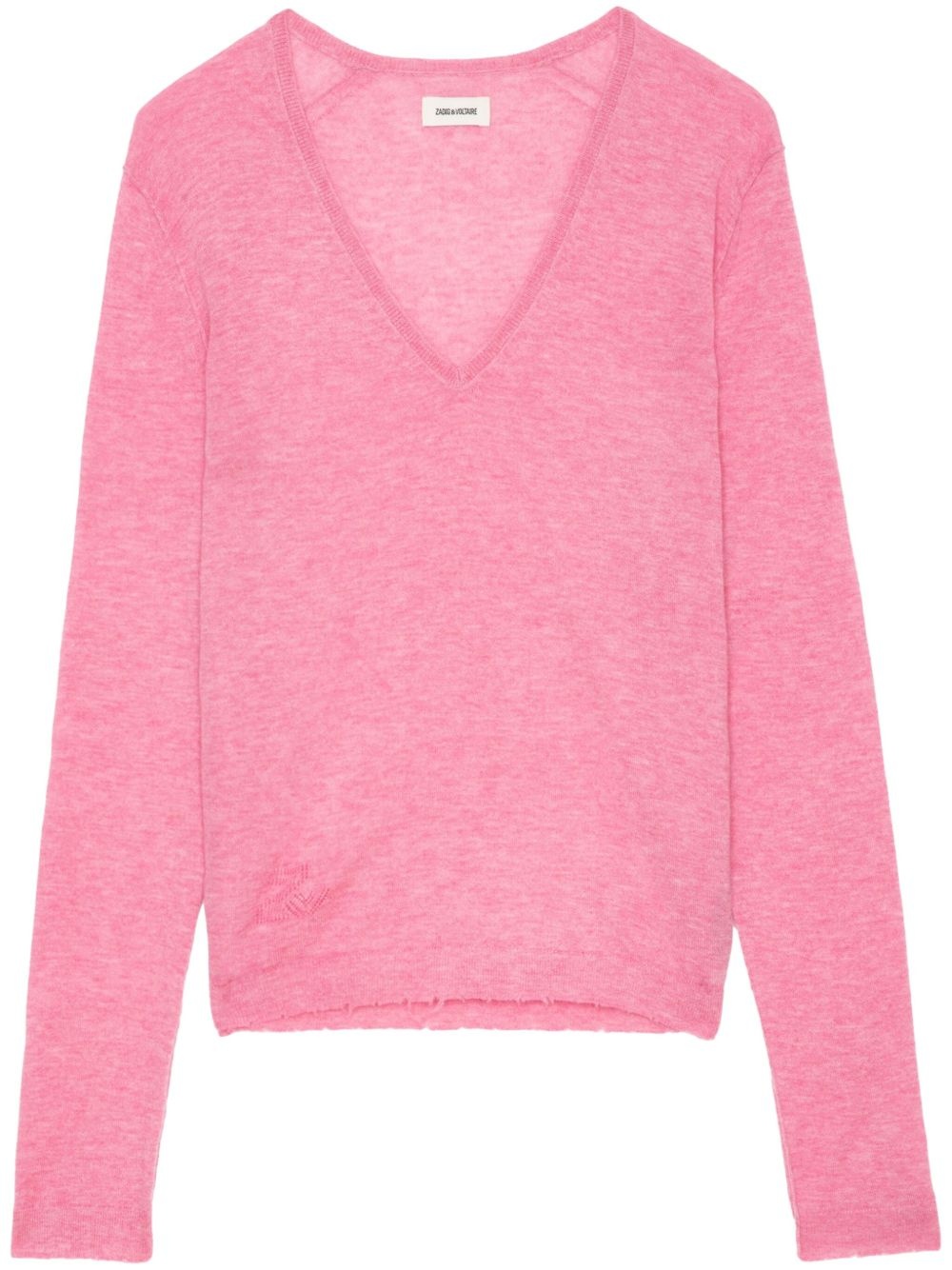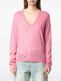 Rivy sweater Highlights - Flamingo pink - Perforated logo detail - V-neck - Raw-cut edge Imported Composition Cashmere 100%