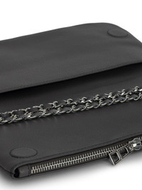 Rock leather clutch bag Highlights - Grey - Calf leather - Grained texture - Tonal logo plaque - Crystal embellishment - Detachable leather and chain-link shoulder strap - Foldover top with magnetic fastening - Two-way zip fastening - Main compartment - Internal logo patch - Full lining - Slip pocket to the front - Rear zip-fastening pocket - Gunmetal-tone hardware Imported Composition Outer: Calf Leather 100% SIZE & FIT Measurement DEPTH 0.78 in(2 cm) HEIGHT 5.11 in(13 cm) STRAP 22.44 in(57 cm) WIDTH 10.62 in(27 cm)