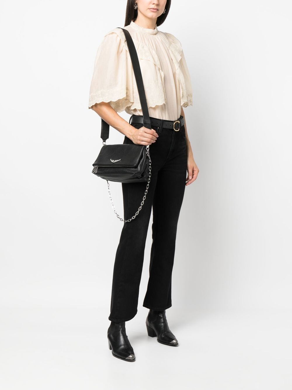 Rock Swing Your Wings shoulder bag Showcasing Zadig&Voltaire's iconic silver rhinestone wings, the Rock Swing Your Wings shoulder bag is imagined in a classic black hue for SS23. Imported Composition Lining: Cotton 100% Outer: Calf Leather 100% SIZE & FIT Model measurements Height 5 ft 10 in(1.79 m) Bust/Chest 32.7 in(83 cm) Hips 35.8 in(91 cm) Waist 24 in(61 cm) Measurement DEPTH 5.1 in(13 cm) HANDLE 12.6 in(32 cm) HEIGHT 6.7 in(17 cm) STRAP 22 in(56 cm) WIDTH 10.6 in(27 cm)