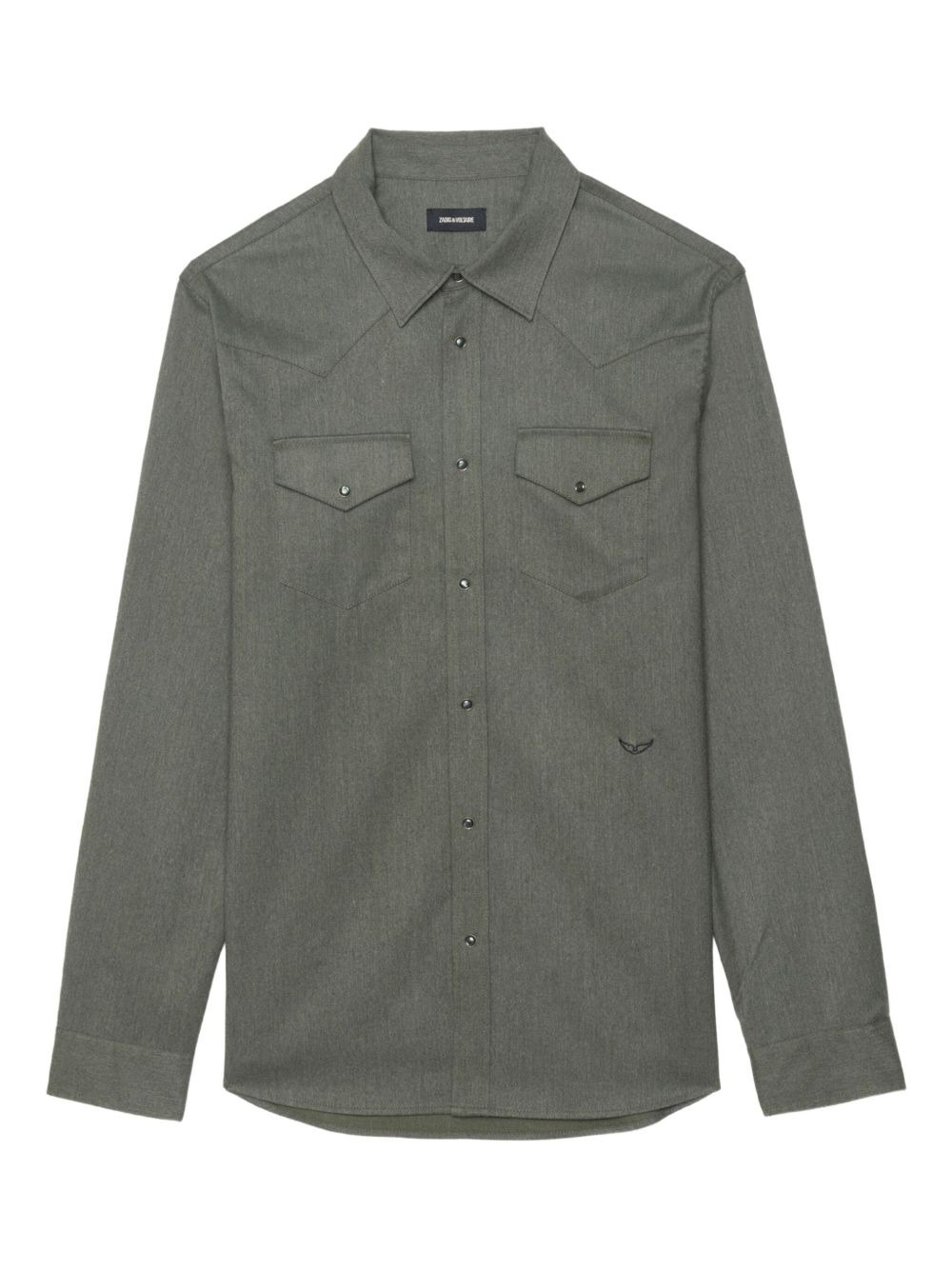 Saby double-pocket long-sleeve shirt Highlights - Olive green - Long sleeves - Button fastening - Two chest-pockets - Pointed collar - Embroidered logo Imported Composition Recycled Polyester 64%, Viscose 34%, Elastane 2% Washing instructions Hand Wash
