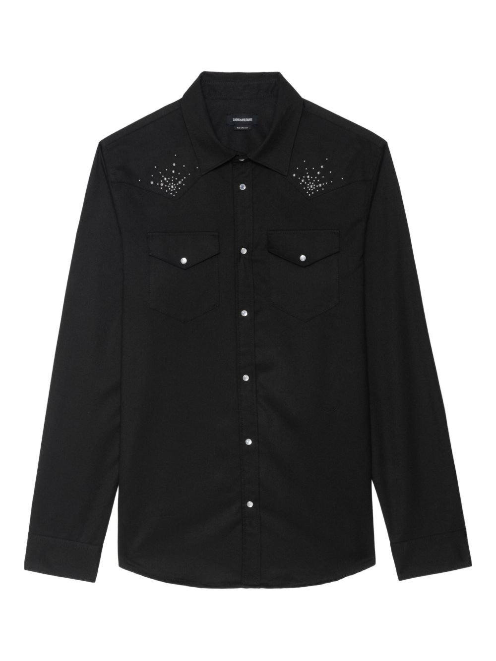Saby embellished pocket shirt Highlights - Black - Point collar - Front button fastening - Long sleeves - Two chest pockets Imported Composition Recycled Polyester 64%, Viscose 34%, Elastane 2% Washing instructions Hand Wash