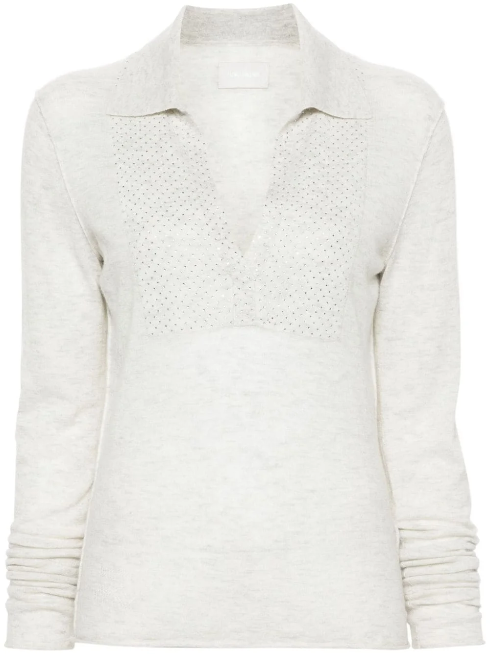 Sally rhinestone-embellished cashmere jumper Highlights - Light beige - Cashmere - Fine knit - Melange effect - Inside-out effect seams - Rhinestone-embellished front panel - Polo collar with split neck - Long sleeves - Straight hem Imported Composition Cashmere 100% SIZE & FIT Model measurements Height 5 ft 9 in(1.76 m) Bust/Chest 31.1 in(79 cm) Hips 36.61 in(93 cm) Waist 24.8 in(63 cm) FittingInformation Designed for a slim fit that sits just away from the body offering a close yet comfortable fit Made with a lightweight knit, this piece offers some stretch This piece fits true to size – take your usual size