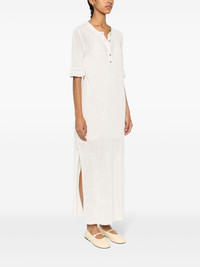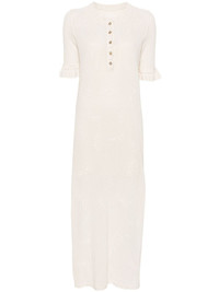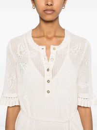 Salmy Wings pointelle-knit dress Highlights - Ecru - Organic cotton - Pointelle knit - Logo-engraved gold-tone buttons - Round neck - Short sleeves with flared cuffs - Side slits - Front button placket - Internal fine-ribbed organic-cotton slip dress Imported Composition Lining: Organic Cotton 100% Outer: Organic Cotton 100% SIZE & FIT Model measurements Height 5 ft 9 in(1.76 m) Bust/Chest 31.1 in(79 cm) Hips 36.61 in(93 cm) Waist 24.8 in(63 cm) FittingInformation Designed for a slim fit that sits just away from the body offering a close yet comfortable fit The detachable slip sits just away from the body, offering a close yet comfortable fit Made with a midweight knit, this piece offers some stretch This piece fits true to size – take your usual size Washing instructions Hand Wash