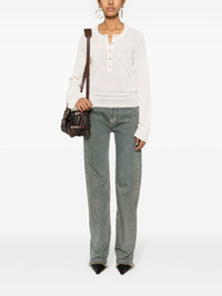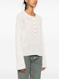 Salmyr Wings cotton jumper Highlights - Ecru - Cotton - Open knit - All-over logo motif - Scallop round neck - Long sleeves - Short side slits - Straight hem - Unlined - Logo-embossed gold-tone buttons - Short front button fastening Imported Composition Cotton 100% SIZE & FIT Model measurements Height 5 ft 9 in(1.76 m) Bust/Chest 31.1 in(79 cm) Hips 36.61 in(93 cm) Waist 24.8 in(63 cm) FittingInformation Designed for a relaxed fit, this piece allows for comfort and movement when worn Made with a midweight knit, this piece offers some stretch This piece fits true to size – take your usual size Washing instructions Hand Wash