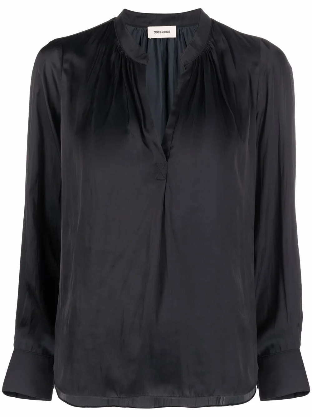 satin-finish V-neck blouse Crafted from lightweight material with a satin finish, this delicate blouse from Zadig&Voltaire boasts subtle pleats, complementing its lustrous construction. Imported Composition Polyester 100% SIZE & FIT Model measurements Height 5 ft 11 in(1.8 m) Bust/Chest 31.49 in(80 cm) Hips 36.61 in(93 cm) Waist 24.4 in(62 cm) FittingInformation This piece fits true to size. We recommend you get your regular size Cut for a loose fit Made with a lightweight non-stretch fabric Washing instructions Hand Wash