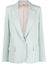 single-breasted blazer Imagined in a celadon-blue hue, this blazer displays the sophisticated side of Zadig & Voltaire. The tailored piece has an elegant single-breasted silhouette which is elevated by its peak lapels. Highlights - Pastel blue - Peak lapels - Front button fastening - Long sleeves - Two front flap pockets Imported Composition Outer: Acetate 76%, Polyester 24% Lining: Viscose 100% SIZE & FIT Model measurements Height 5 ft 10 in(1.77 m) Bust/Chest 32.67 in(83 cm) Hips 35.43 in(90 cm) Waist 23.62 in(60 cm) FittingInformation This piece fits true to size. We recommend you get your regular size Cut for a slim fit Made with a mid-weight non-stretch fabric Washing instructions Dry Clean Only