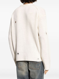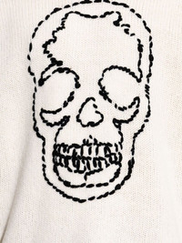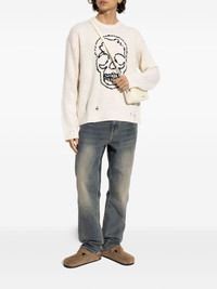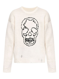 skull-embroidered distressed sweater Highlights - Ecru - Skull embroidery - Distressed detailing - Crew neck - Long sleeves Imported Composition Wool 100% Washing instructions Read Manufacturer Guidelines