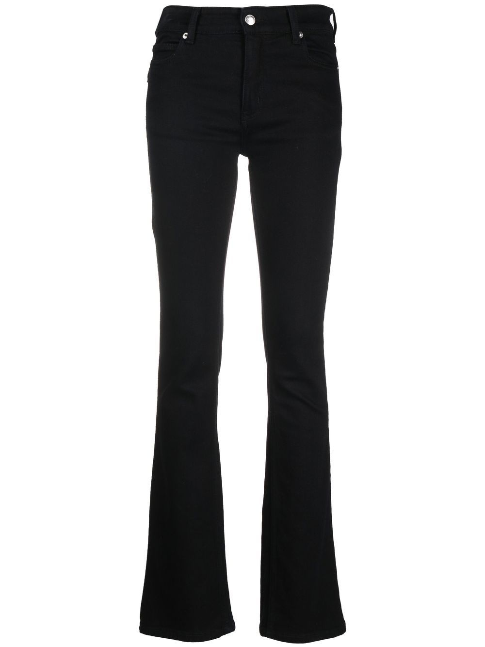 slim-fit bootcut jeans black organic cotton blend belt loops zip fly fastening bootcut Conscious: This item is made from at least 50% organic materials Imported Composition Organic Cotton 99%, Elastane 1% SIZE & FIT Model measurements Height 5 ft 10 in(1.79 m) Bust/Chest 33.07 in(84 cm) Hips 35.03 in(89 cm) Waist 24.4 in(62 cm) FittingInformation This piece fits true to size. We recommend you get your regular size Cut for a slim fit Made with a mid-weight stretch fabric Washing instructions Machine Wash