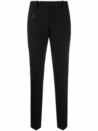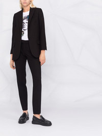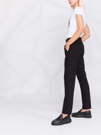 slim-fit suit trousers black two side inset pockets two rear jetted pockets belt loops hook and zip fly fastening slim cut Imported Composition Lining: Acetate 50%, Viscose 50% Outer: Polyester 69%, Viscose 26%, Spandex/Elastane 5% Washing instructions Dry Clean Only
