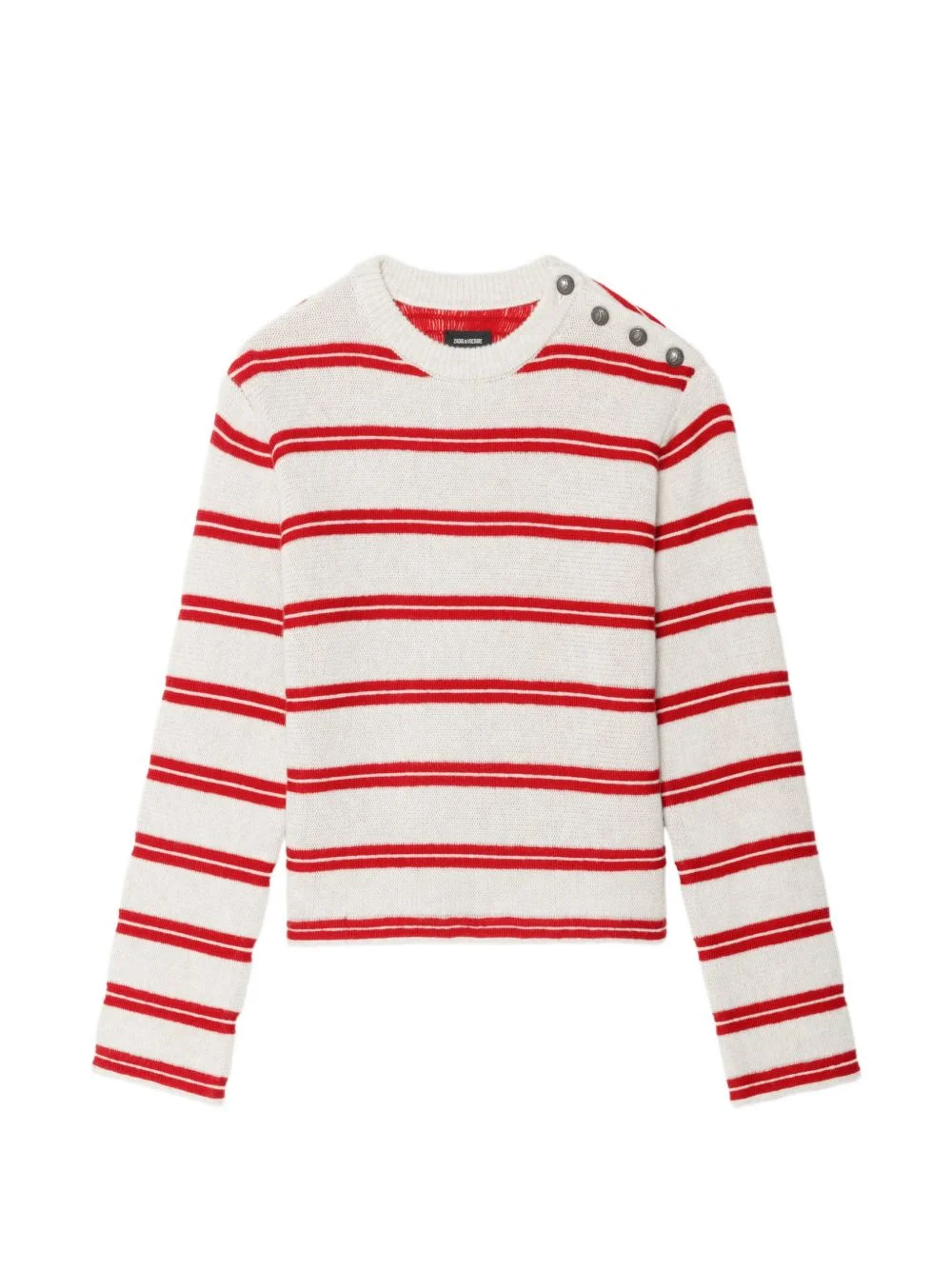 Spikyz striped buttoned-detail wool sweater Highlights - Beige - Striped - Buttons on the shoulder - Round neck - Long sleeves Imported Composition Wool 90%, Cashmere 10% Washing instructions Machine Wash