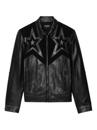 star-applique leather jacket Highlights - Black - Leather - Suede star patches - Front zip fastening - Side zip-fastening pockets - Straight hem Imported Composition Leather 100% Washing instructions Specialist Cleaning