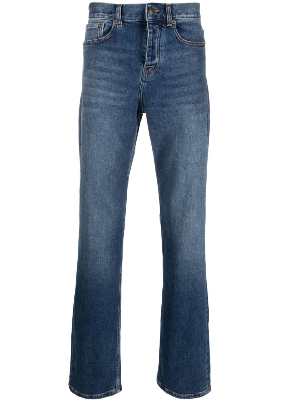 straight-leg cotton jeans Highlights - Indigo blue - Stretch-cotton - Logo patch to the rear - Whiskering effect at the thighs - Straight leg - Mid-rise - Belt loops - Front button and zip fastening - Classic five pockets Imported Composition Cotton 99%, Elastane 1% SIZE & FIT Model measurements Height 6 ft 0 in(1.84 m) Bust/Chest 36.22 in(92 cm) Hips 35.43 in(90 cm) Waist 26.77 in(68 cm) FittingInformation Designed with a straight leg, these jeans allow for an unrestricted and comfortable fit over the leg Constructed from stretch denim, this piece offers a stretch fit with durability This piece fits true to size – take your usual size Washing instructions Machine Wash