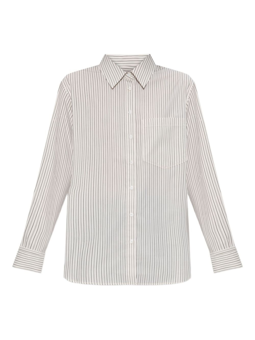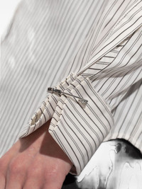 striped pin-cuff shirt Highlights - Beige - Pinstripe pattern - Pin-cuff detail - Button fastening - Chest pocket - Back print Imported Composition Cotton 100% Washing instructions Read Manufacturer Guidelines