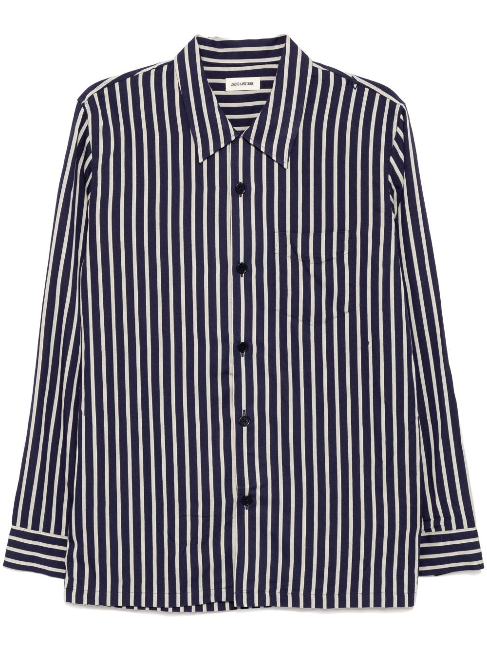 striped shirt Highlights - Navy blue - Front button fastening - Chest patch pocket - Curved hem Imported Composition Viscose 89%, Polyamide 11%