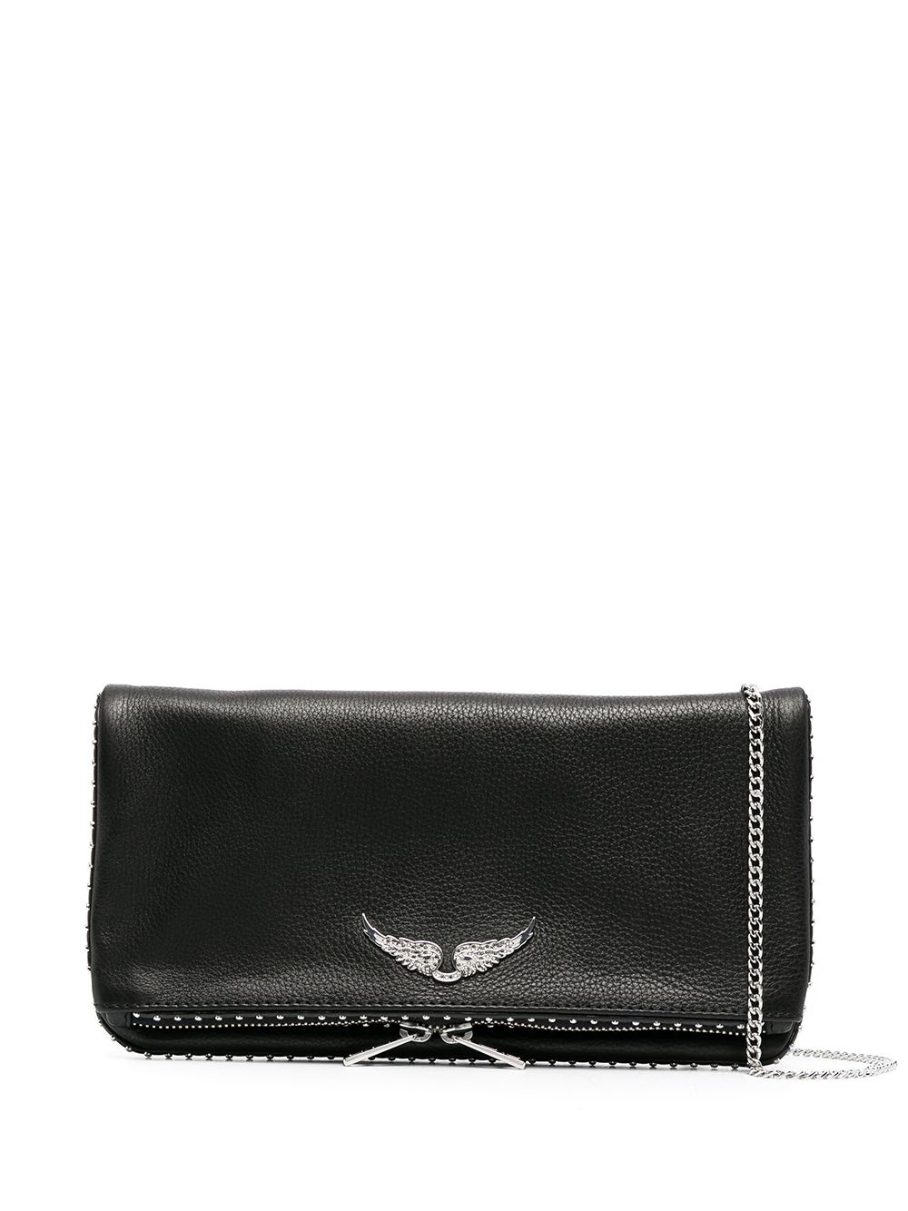studded clutch bag Black leather studded clutch bag from Zadig & Voltaire featuring silver-tone hardware, an internal logo patch, rounded stud embellishments, a top zip fastening, a foldover top with magnetic closure and a silver-tone logo plaque. Made in Italy Composition Outer: Calf Leather 100% SIZE & FIT Model measurements Height 5 ft 10 in(1.79 m) Bust/Chest 32.67 in(83 cm) Hips 35.03 in(89 cm) Waist 24.8 in(63 cm)