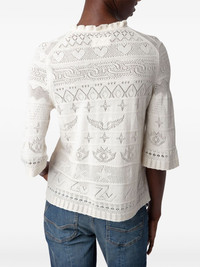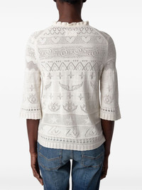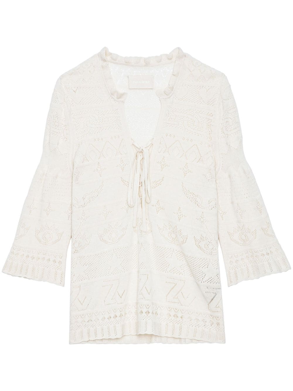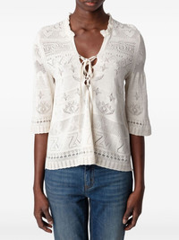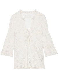 Taho openwork-knit top Highlights - Ecru - Cotton - Open knit - Ribbed-knit edge - V-neck - Front lace-up fastening - Three-quarter length sleeves - Straight hem Imported Composition Cotton 100%