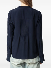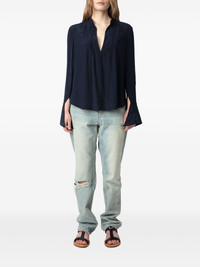 Taika shirt Highlights - Midnight blue - Front tie fastening - Round split neck - Flared cuffs - Fine ribbed Imported Composition Viscose 100%