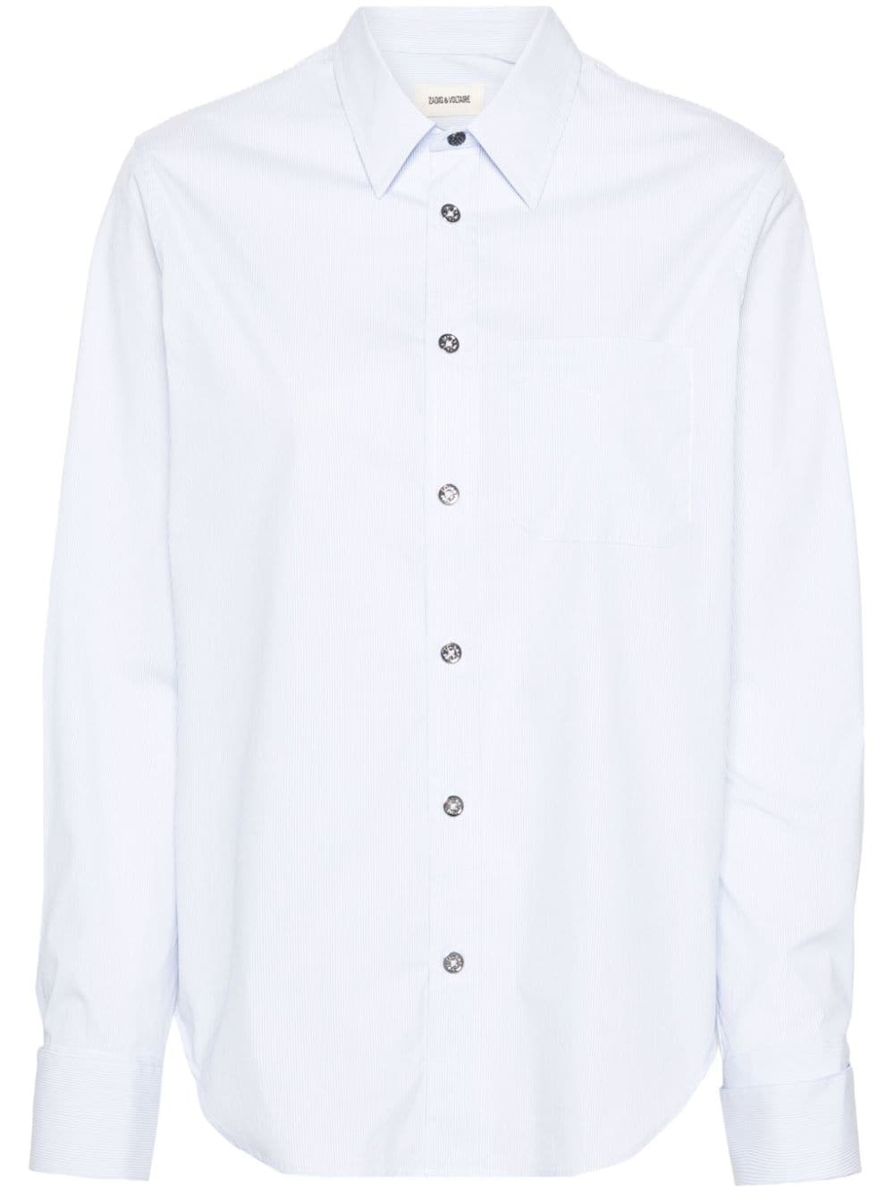 Taskiza striped shirt Highlights - Light blue/white - Organic cotton blend - Vertical stripe pattern - Classic collar - Long sleeves with french cuffs and cufflinks - Pleat detailing to the sleeve - Chest patch pocket - Curved hem - Logo-debossed buttons - Front button fastening Imported Composition Organic Cotton 65%, Polyamide 30%, Elastane 5% SIZE & FIT Model measurements Height 5 ft 9 in(1.75 m) Bust/Chest 34.64 in(88 cm) Hips 36.61 in(93 cm) Waist 26.37 in(67 cm) FittingInformation Designed for a relaxed fit, this piece allows for comfort and movement when worn Made from a lightweight non-stretch fabric This piece fits true to size – take your usual size